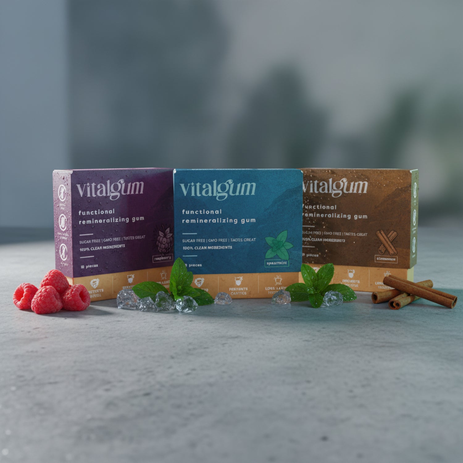 Discover the taste that fuels your smile choose your favorite VitalGum flavor.